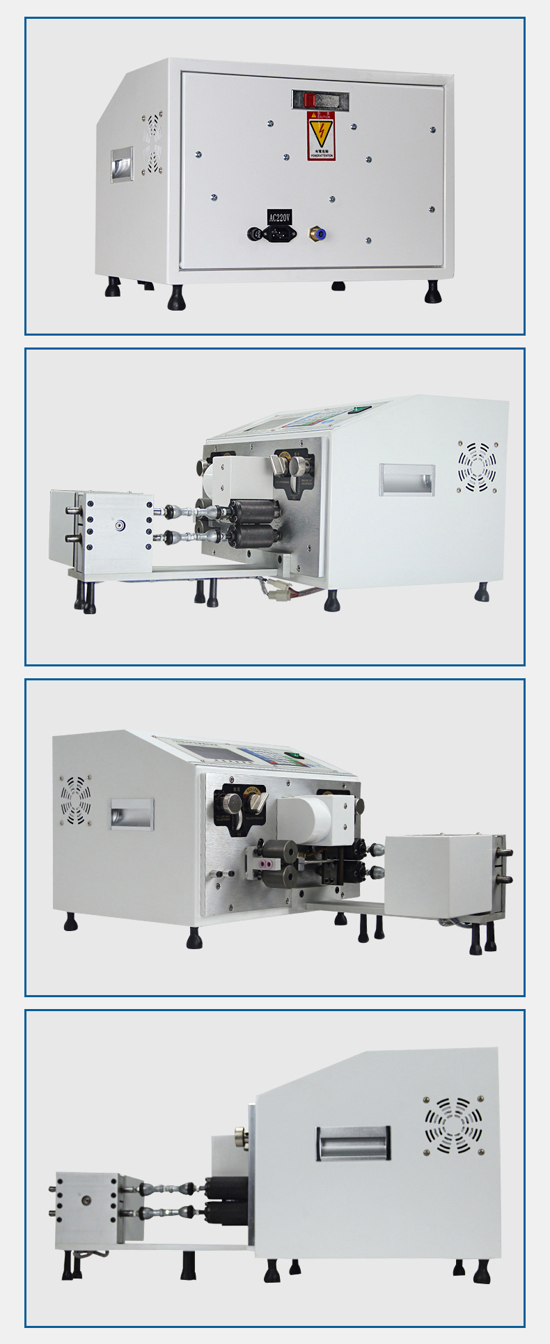 2.主要用于電源線、護套線、屏蔽線、音頻線、視頻線、USP線、數據線、電話線、裁斷和剝外皮一次性完成,且多層扁平電源可一次性裁斷和內外同時剝皮。